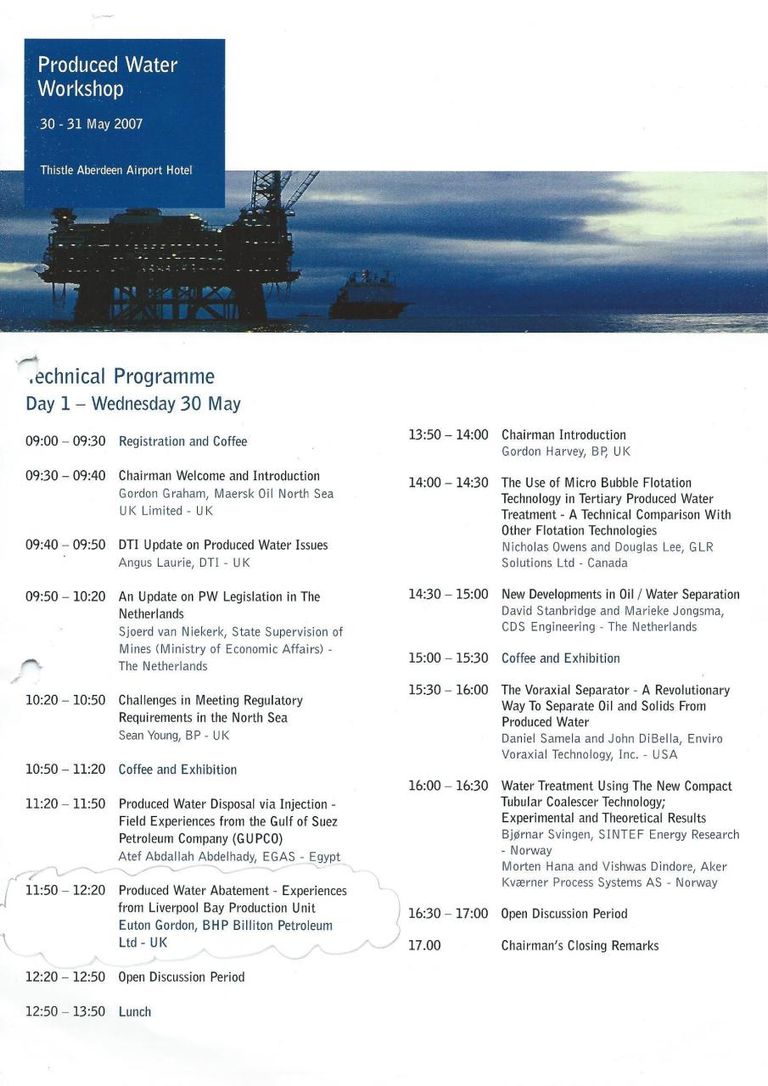 Background –In 2001 the OSPAR committee recommended a 15% reduction of oil discharged in produced water based on the producer’s calendar year 2000 produced water discharges. In addition, it was recommended that the monthly average oil in water (OIW) concentration limit be reduced from 40 mg/l to 30 mg/l. In the UK the DTI arranged for these changes to be implemented in 2006 so that the industry could adjust for the new requirements. For one asset Euton was involved in, produced water rates had doubled in the years post 2000 which meant that the required OIW discharge concentration to meet the new requirement was 5 mg/l – a big ask for any abatement system.